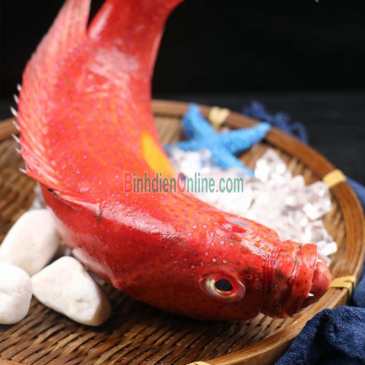 - Cá mú (cá song) đấu giá . Thân mập chắc lấy hàng . Cá có màu đỏ chấm đen chính hãng . Thịt trắng phản hồi , hơi dai vận chuyển , ăn mini rất ngon xuất xứ . Được nhiều người ưa thích.